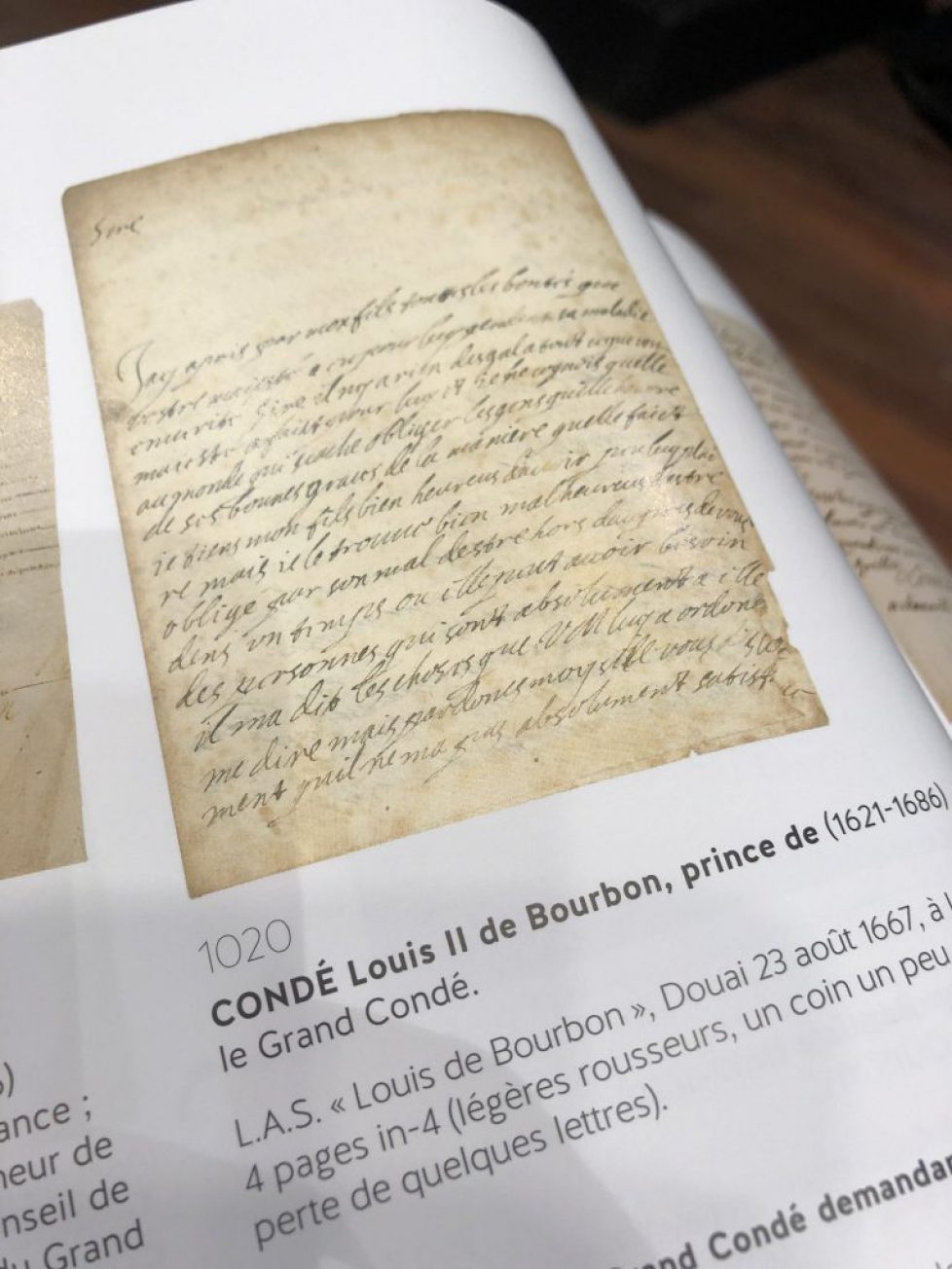 Le musée Condé à Chantilly a préempté plusieurs lettres de Louis, prince de Condé dont une adressée au roi Louis XIV. (Merci à Anne)
