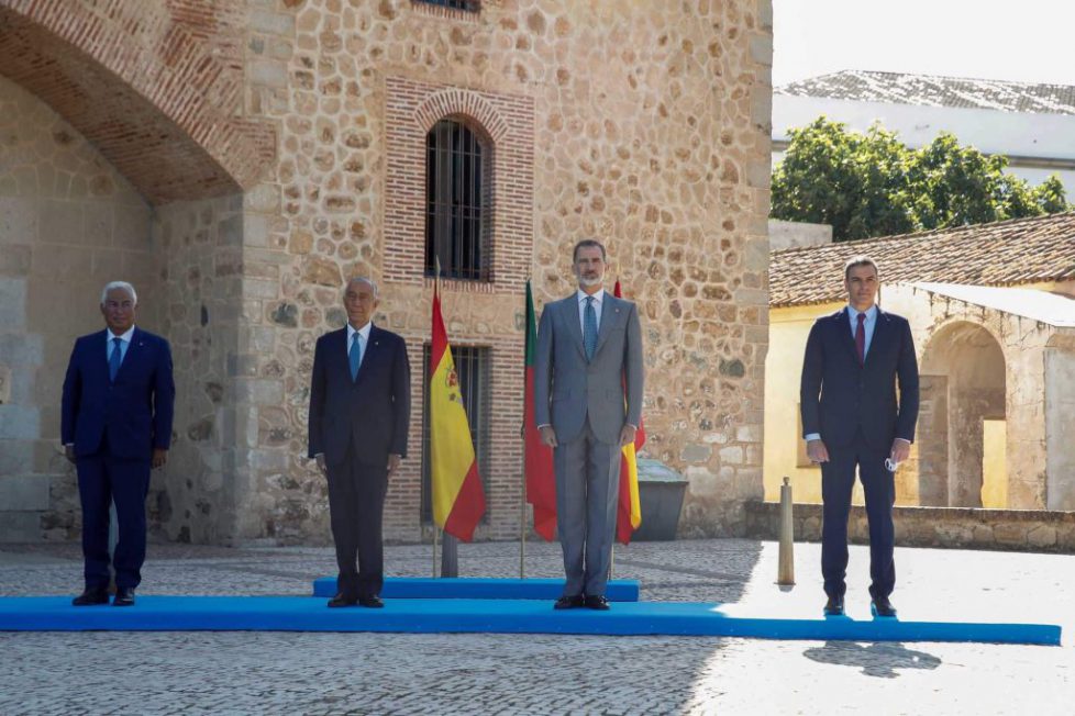 A La Alcazaba en province de Badajoz, le roi Felipe d’Espagne a assisté avec le président du Portugal et les chefs de gouvernement à la réouverture officielle des frontières entre les deux pays. (merci à Alberto)