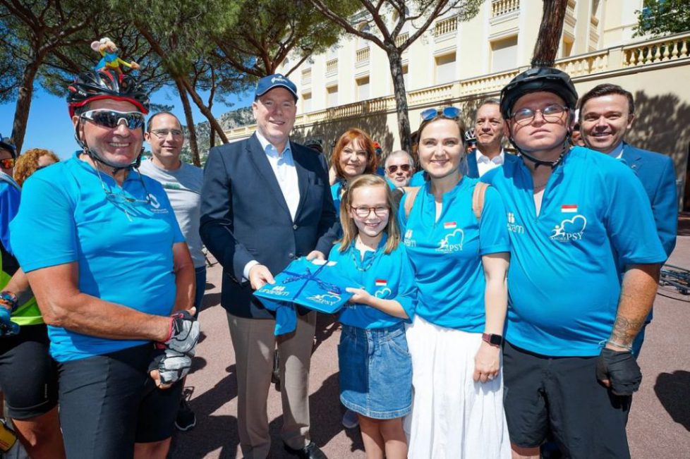 Le prince Albert de Monaco était présent sur la place du Palais à l’arrivée de la Psycyclette, une randonné cyclotouristique organisée dans le cadre du soutien aux personnes souffrant de troubles psychiques. (© Direction de la Communication / Michael Alesi)