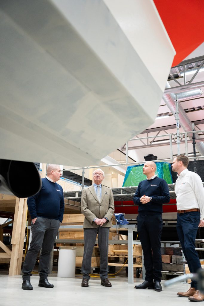 Près de Göteborg, le roi Carl Gustaf de Suède est venu voir l’évolution du chantier d’un bateau de sauvetage, étant lui-même président de l’association nationale.