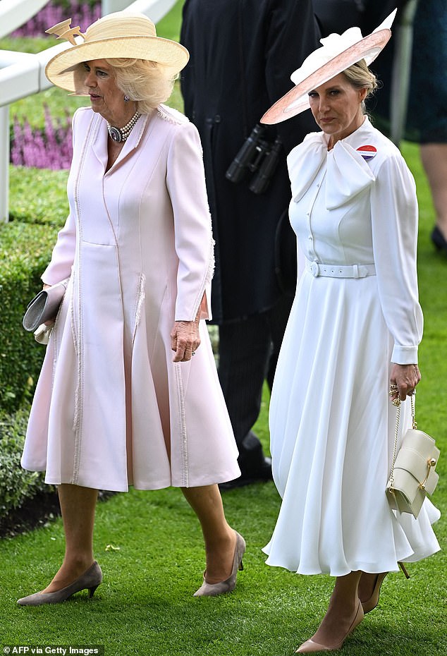 Zara Philipps-Tindall, fille de la princesse Anne et championne d’équitation, était présente à la course hippique avec son époux, Mike Tindall. La princesse Anne discutait avec quelques invités, près de sa fille. La reine Camilla portait une robe ivoire Dior et une broche ayant appartenu à la reine mère.