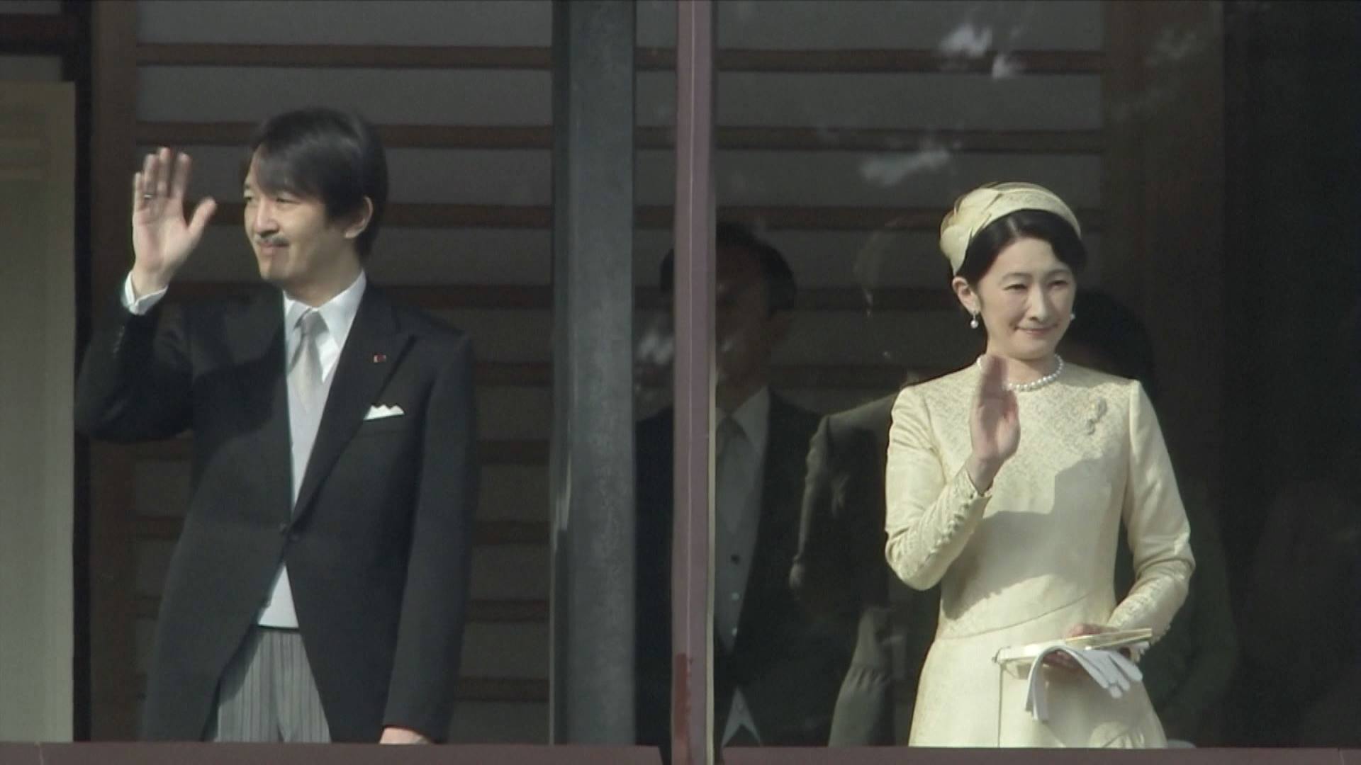 Apparition de la famille impériale du Japon au balcon du palais impérial de Tokyo à l’occasion des 83 ans de l’empereur Akihito. (Copyright photos : Place royale)