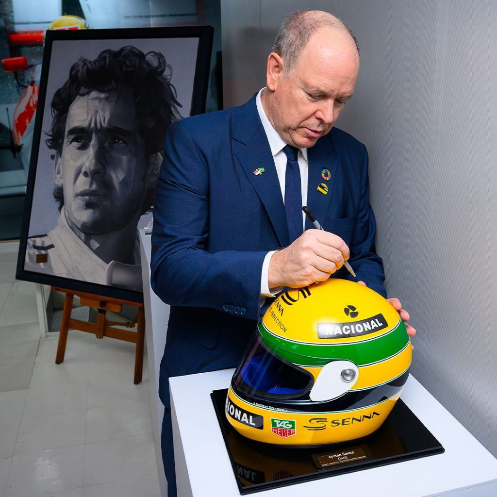 Le prince Albert de Monaco a été reçu à Sao Paulo à l’Institut Ayrton Senna par la famille du champion brésilien de Formule 1 décédé en 1994 lors du Grand Prix d’Imola.