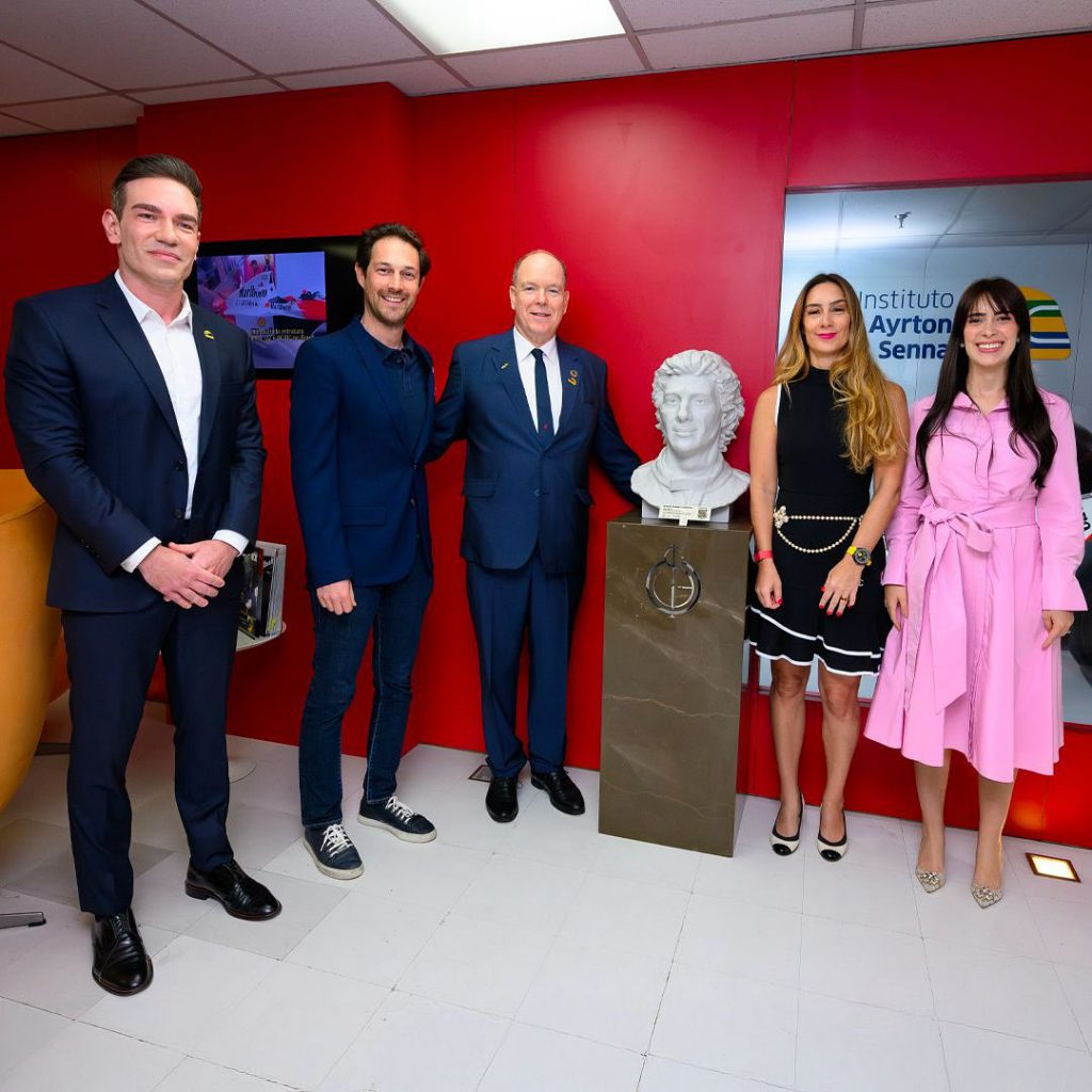 Le prince Albert de Monaco a été reçu à Sao Paulo à l’Institut Ayrton Senna par la famille du champion brésilien de Formule 1 décédé en 1994 lors du Grand Prix d’Imola.
