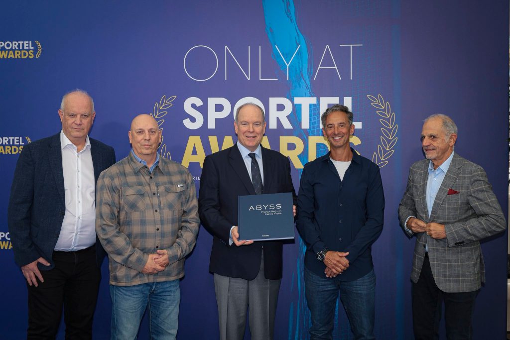 Le prince Albert de Monaco s’est rendu à « Sportel » au Grimaldi Forum. Il a assisté à la présentation du livre de Pierre Frolla « Abyss ». (Copyright photo : Monaco-Info/Direction de la Communication/S.Danna)