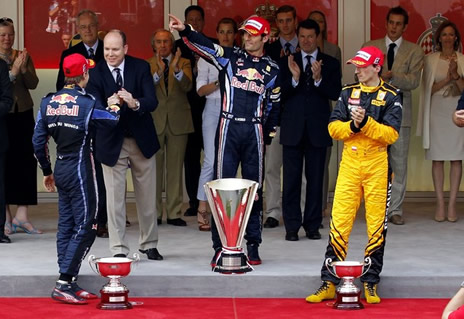 Le prince Albert de Monaco accompagné par Charlene Wittstock et ses neveux Andrea, Charlotte et Pierre Casiraghi, a assisté au Grand Prix de Formule 1 qui vit la victoire du pilote australien Marc Webber. (Copyright photos : Getty images – Merci à Danielle)