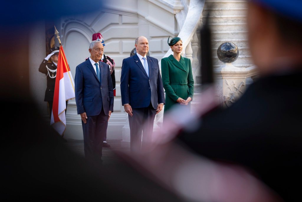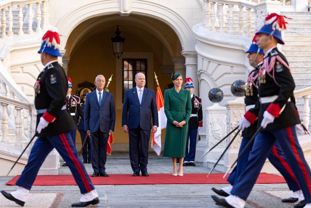 Le prince Albert et la princesse Charlène de Monaco ont reçu le président du Portugal, Marcelo Rebelo de Sousa en visite officielle.