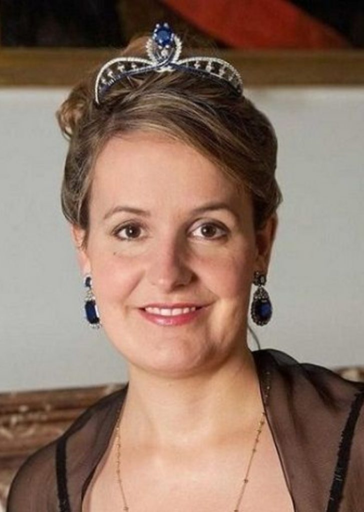 Le diadème que porte aujourd’hui la princesse lui vient de sa belle-mère la duchesse de Montpensier qui l’avait reçu en cadeau de mariage des royalistes français. Ce bijou est probablement une oeuvre du joaillier Mellerio.