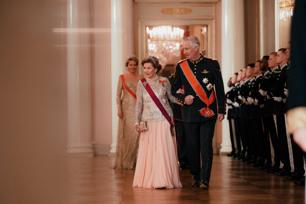 Amusant le contraste costume et coiffure du vis à vis de la Reine Mathilde ! Nouvelle génération, nouvelle tenue 🤗