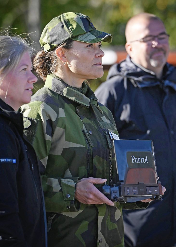 Le roi Carl Gustaf et la princesse héritière Victoria de Suède ont rendu visite aux forces armées et ont été informés des dernières avancées technologiques avec des drones.
