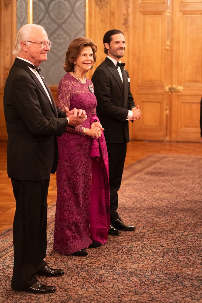 Le roi Carl Gustaf, la reine Silvia et le prince Carl Philip de Suède ont donné un dîner de gala au Palais royal de Stockholm pour des personnalités s’étant illustrées dans le rayonnement de leur région.