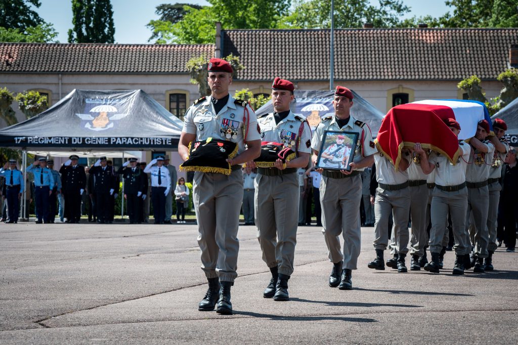 A la caserne du 17ème régiment du Génie parachutiste à Montauban, la princesse Caroline de Monaco, marraine du régiment, a assisté avec les autorités dont la Ministre des Armées aux funéraills de l’adjudant Florian Montorio, décédé lors de la mission de la FINUL au Liban, tué par un tir du Hezbollah.