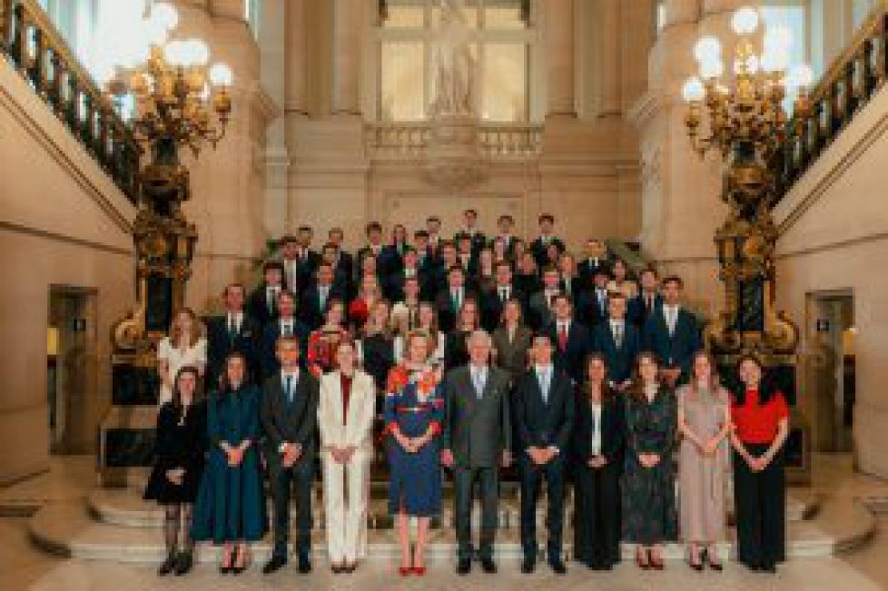 Le roi Philippe et la reine Mathilde ont dîné avec 28 jeunes professeurs de l’enseignement spécialisé au Château de Laeken. (Copyright photos : Palais royal)