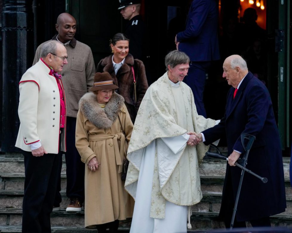 Le roi Harald, la reine Sonja, la princesse Martha Louise et son époux ont assisté à l’office de Noël en l’église de Holmenkollen.