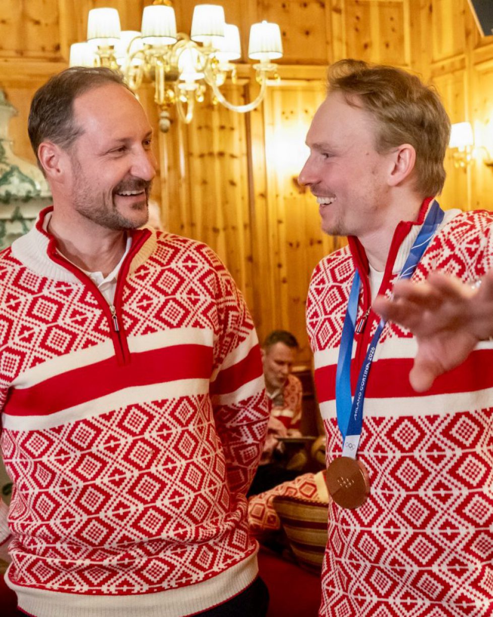 Le prince héritier Haakon de Norvège est venu féliciter Henrik Kristoffersen qui a ramené la 27ème médaille aux JO d’hiver 2026 au pays.