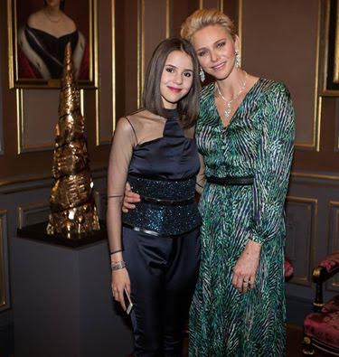 Sympathique photo où Charlène pose avec cette jeune chanteuse Marina Kaye qui est elle aussi fort élégante.