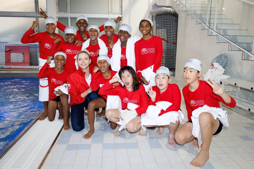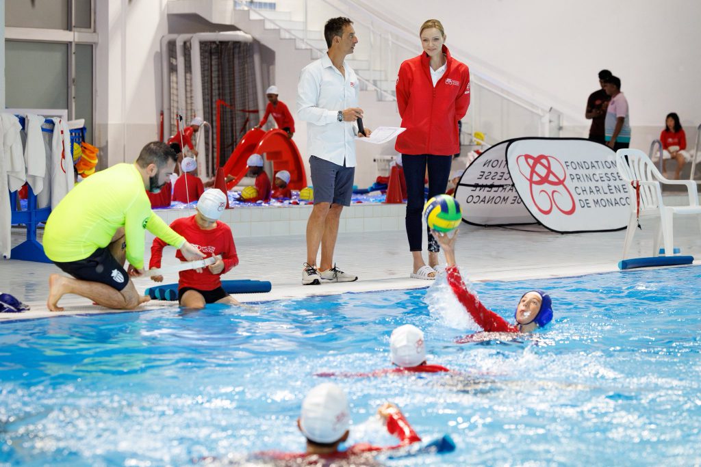 A la piscine du Stade Louis II, la princesse Charlène de Monaco a assisté à la journée de sensibilisation aquatique organisée par sa fondation en amont du Tournoi Sainte Dévote.