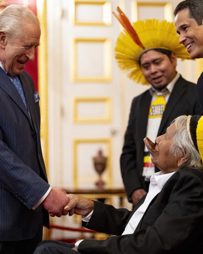 Le roi Charles III s’est entretenu avec le chef amazonien Raoni (1932) lors d’une réunion de la Circular Bioeconomy Alliance (fondée par le roi en 2020) au Palais Saint James à Londres.