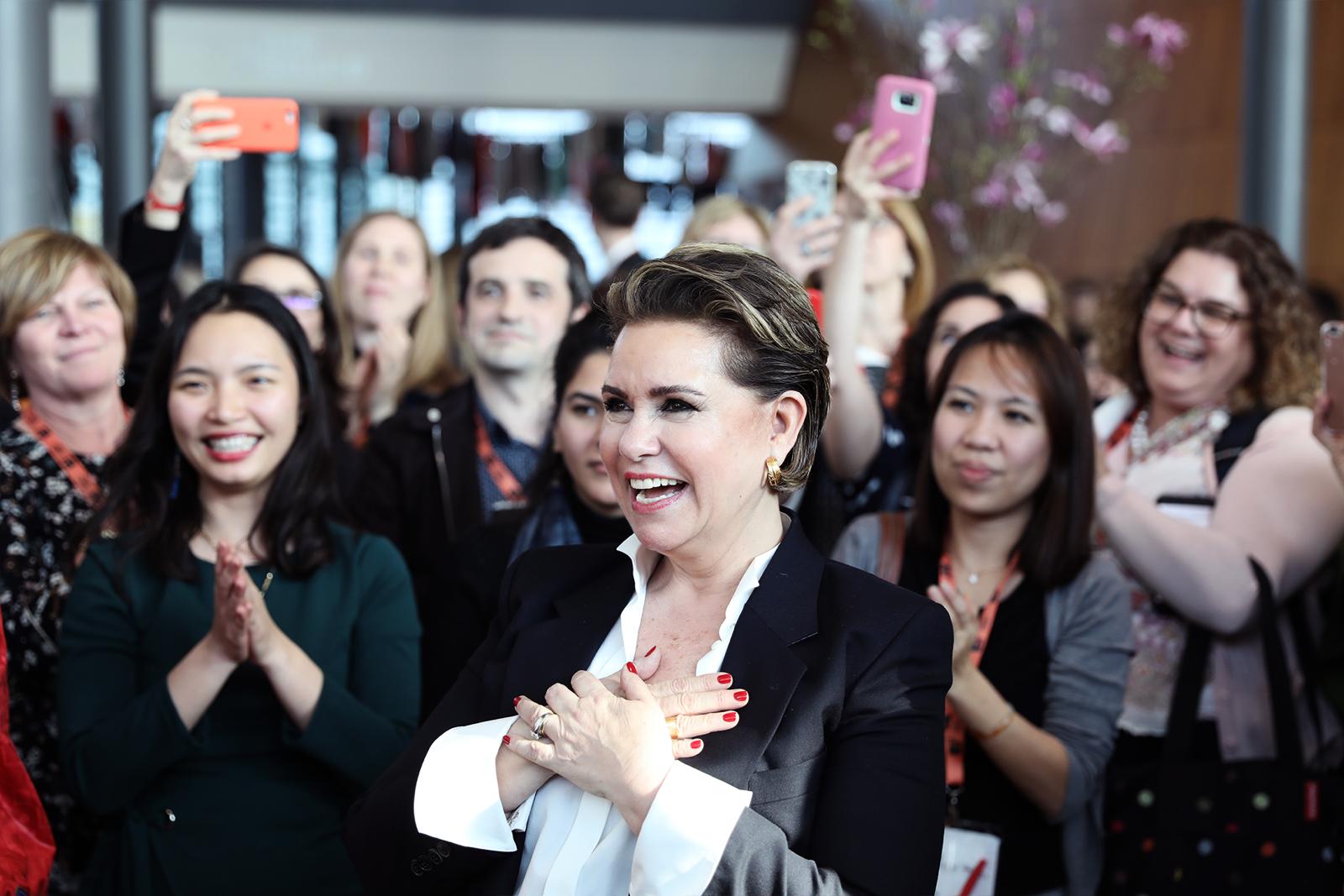 La grande-duchesse Maria Teresa de Luxembourg a clôturé la conférence « Stand speak rise up ! » en remerciant son époux le grand-duc Henri pour son soutien inconditionnel, sa fille la princesse Alexandra qui l’a aidé dans l’organisation du forum, ses partenaires, toutes les survivantes et les intervenants, qui ont contribué au succès exceptionnel de l’événement, le Gouvernement luxembourgeois, ainsi que tous ceux qui ont contribué à l’organisation. La grande-duchesse a remis les signatures de son Appel afin qu’elles soient transmises au Secrétaire général des Nations Unies Antonio Guterres. ( © Cour grand-ducale / Marion Dessard)