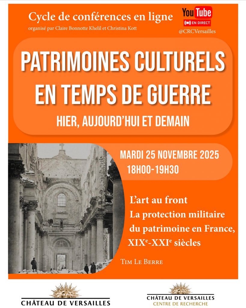 Cette conférence, organisée par le Centre de recherche du château de Versailles, s’inscrit dans le cycle « Patrimoines culturels en temps de guerre – hier, aujourd’hui et demain ». Elle mettra en lumière les méthodes, les pratiques et les enseignements tirés de cette longue expérience de protection du patrimoine en situation de conflit. Cliquez ici