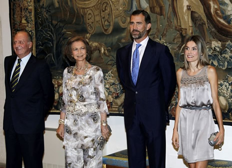 Le Roi a l’air mieux, c’est une bonne nouvelle, la reine et Letizia sont fort élégantes dans des tons très doux et assortis.