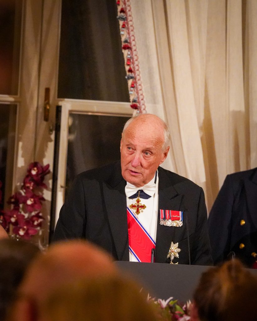 Le roi Harald, la reine Sonja, le prince héritier Haakon, la princesse héritière Mette-Mari et la princesse Astrid de Norvège avaient convié au Palais royal d’Oslo les parlementaires pour un dîner.