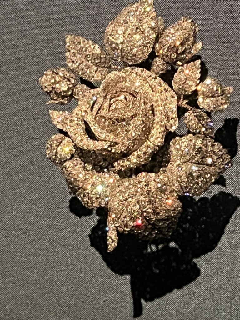 Vous y verrez la réplique de la couronne de l’impératrice Farah d’Iran lors de son couronnement, réalisée par le joaillier Van Cleef & Arpels.