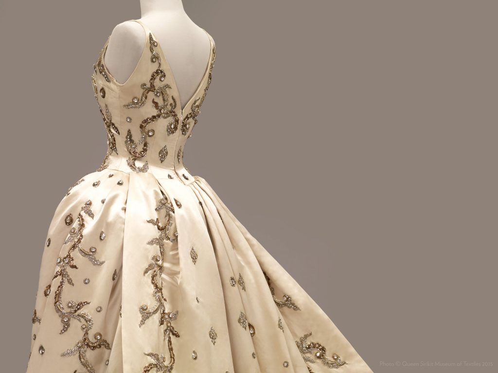 « Elle réunira plus d’une centaine de tenues et d’accessoires exceptionnels et montrera les garde-robes royales, mettant en avant les huit formats de costumes traditionnels thaïlandais conçus par Sa Majesté la reine Sirikit en collaboration avec une équipe d’historiens et de créateurs locaux thaïlandais.