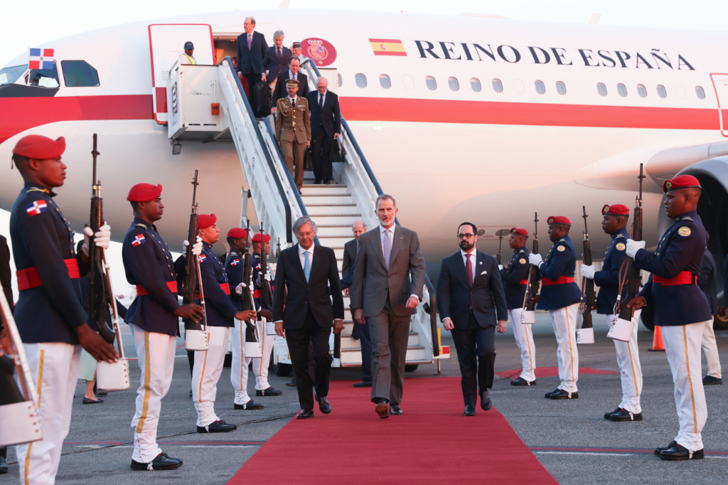 À la sortie de l’avion, à l’aéroport international Las Américas, le roi Felipe a été reçu par le vice-ministre de la Politique étrangère dominicain, José Julio Gómez, et l’ambassadeur d’Espagne en République dominicaine, Antonio Pérez-Hernández.