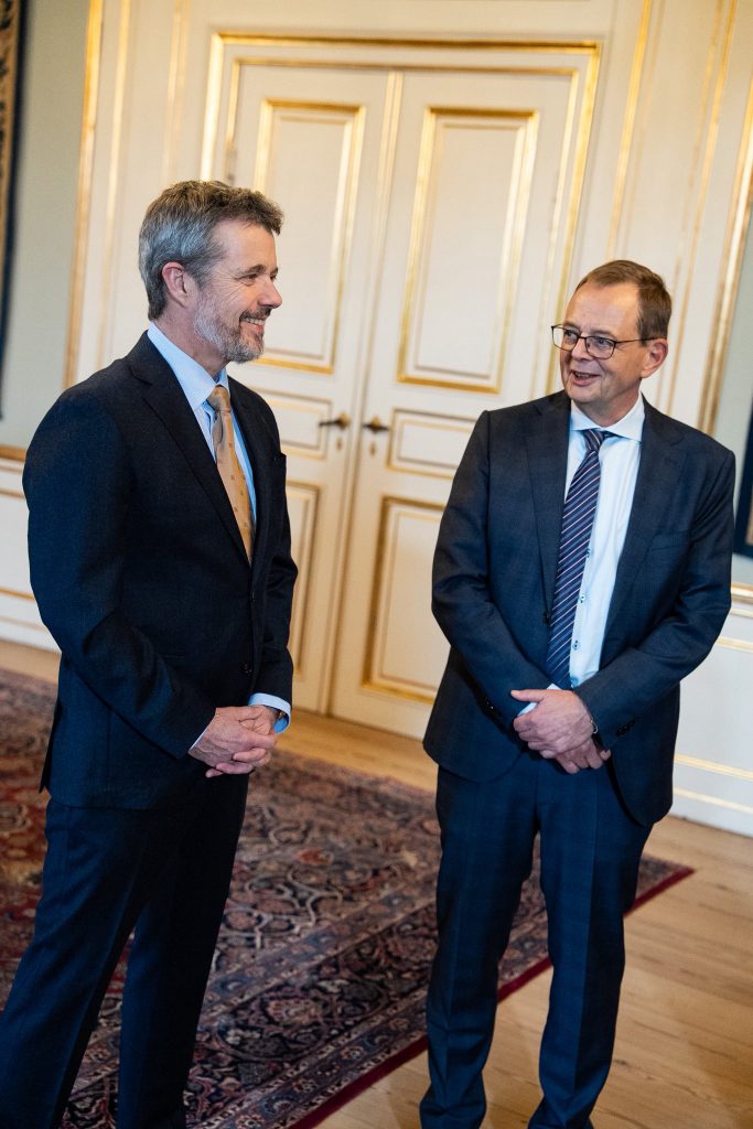 A Amalienborg, le roi Frederik de Danemark a reçu en audience le nouveau directeur de la Banque nationale Christian Kettel Thomsen,. La banque a été fondée en 1818.