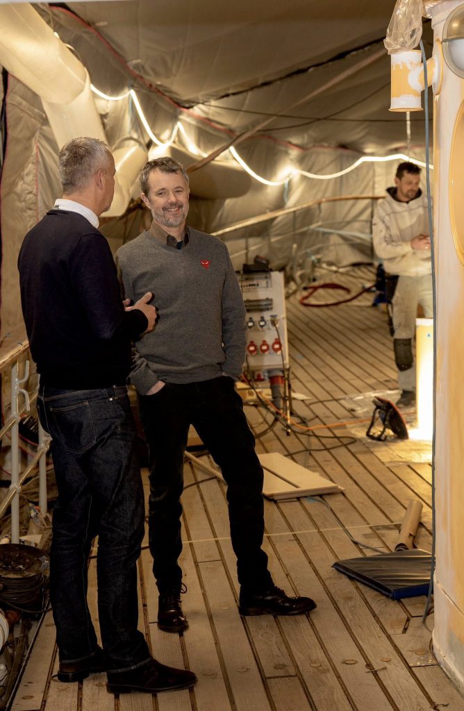 Le roi Frederik et la reine Mary de Danemark ont visité le chantier du yacht royal « Dannebrog » à Frederikshavn où il attend le début de la saison de navigation.