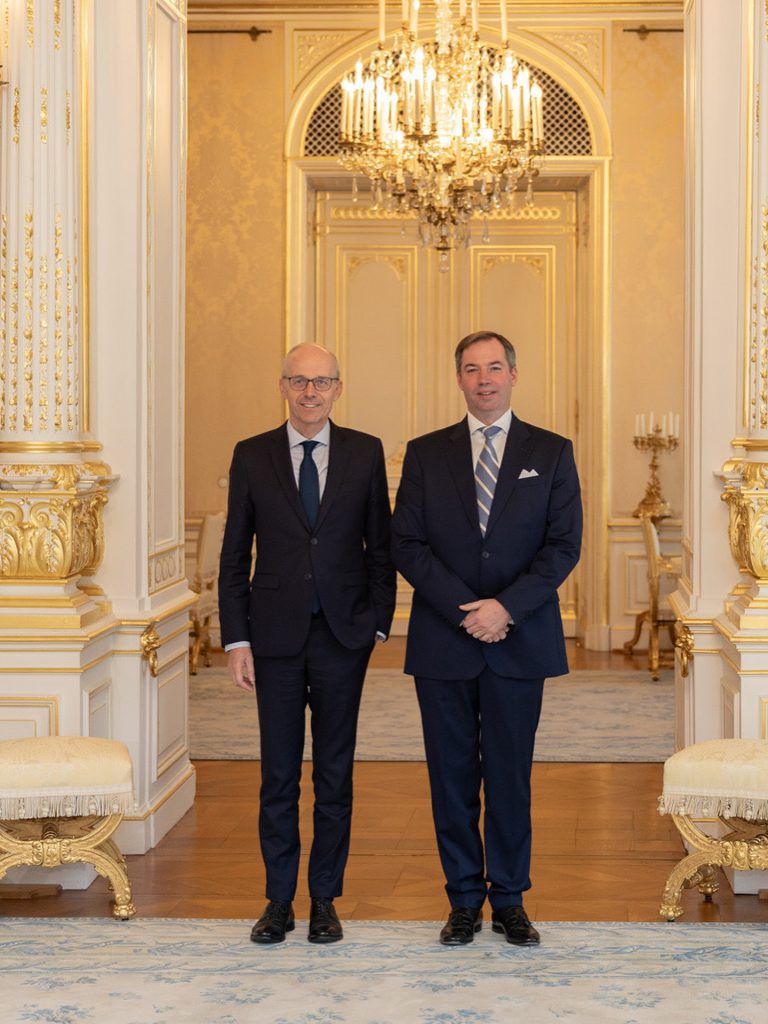 Au Palais grand-ducal, Guillaume de Luxembourg a reçu pour la en audience le Premier Ministre Luc Frieden. (Copyright photo : Maison du Grand-Duc)