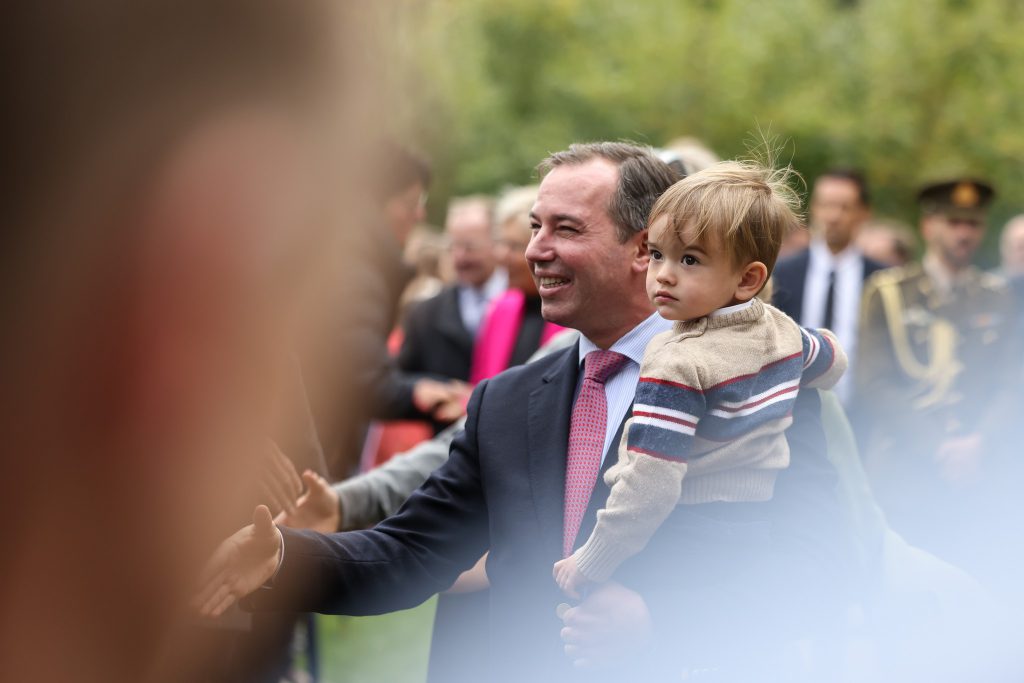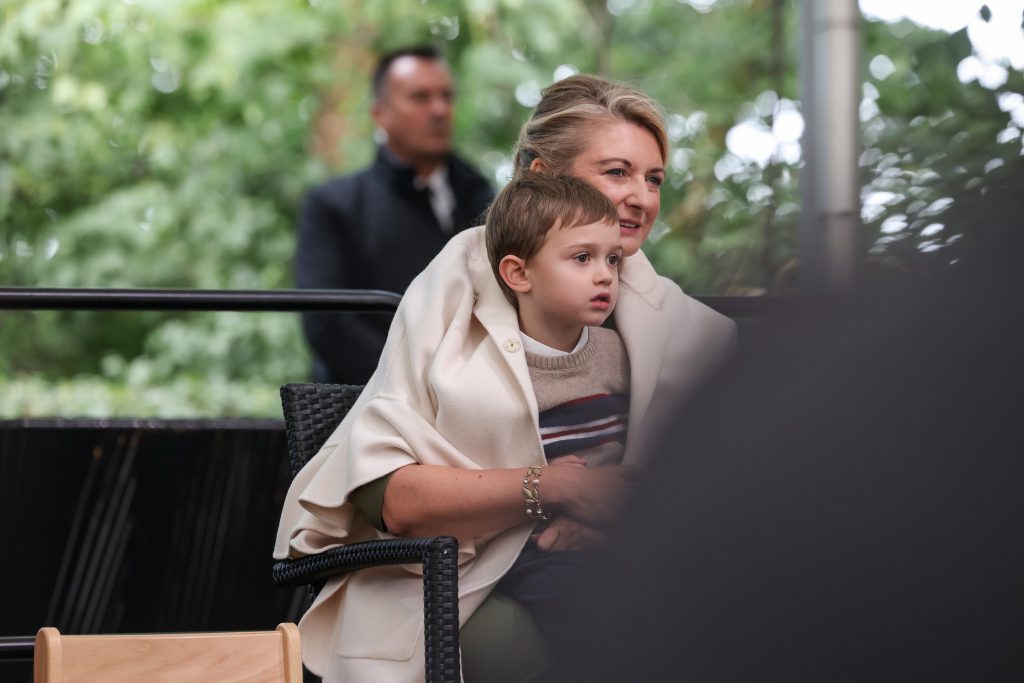 TRès jolie image de cette Maman qui entoure son enfant de son manteau même en sortie officielle.