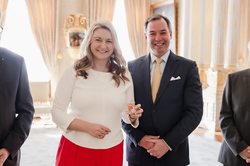 Le grand-duc Guillaume et la grande-duchesse Stéphanie de Luxembourg ont reçu le Comité Alstad et l’association Nouspelter Emaischen, venus présenter les Péckvillercher de l’édition 2026.