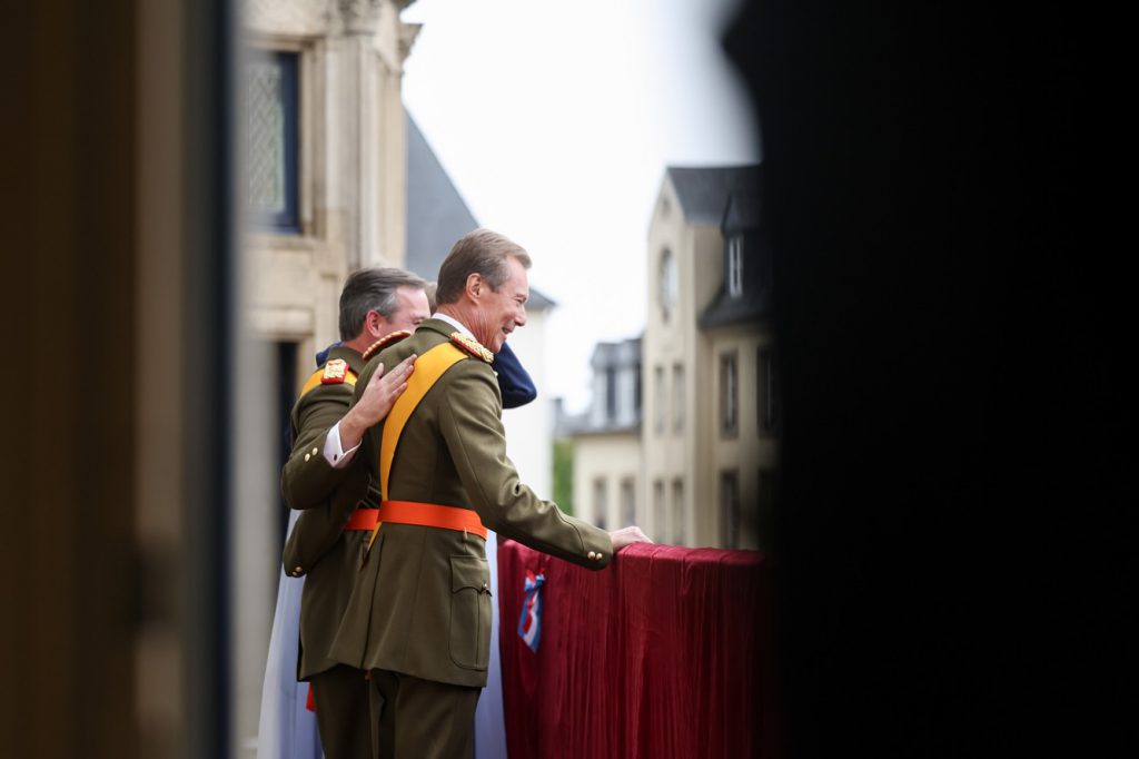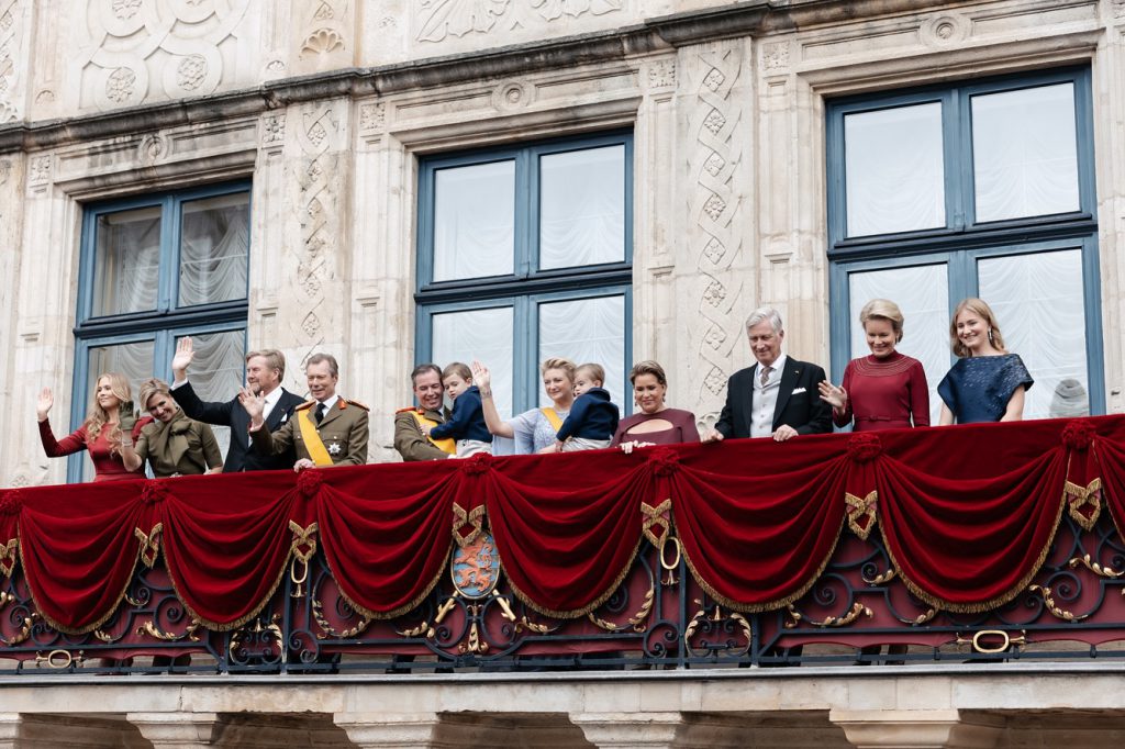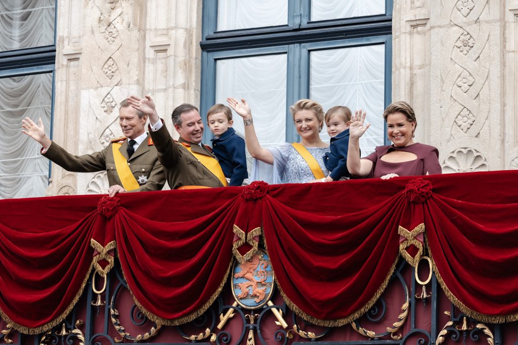Apparition au balcon du Palais grand-ducal à Luxembourg-Ville de Guillaume et Stéphanie de Luxembourg, nouveaux grand-duc et grande-duchesse de Luxembourg en compagnie de leurs enfants le grand-duc héritier Charles et le prince François mais aussi du reste de la famille grand-ducale et des familles royales de Belgique et des Pays-Bas. (Copyright photos : Maison du Grand-Duc)