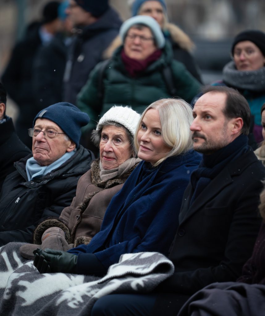 Le prince héritier Haakon et la princesse héritière Mette Marit de Norvège ont assisté à la Journée internationale de l’Holocauste à Akershuskaia. 773 Juifs furent déportés, seuls 35 ont survécu.