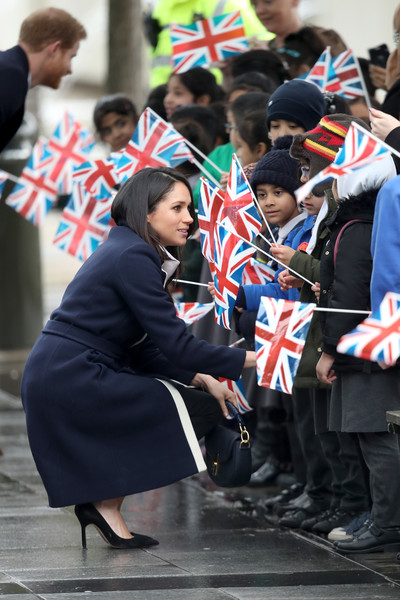 Magnifique manteau . Le Marine est très chic . Meghan est radieuse .