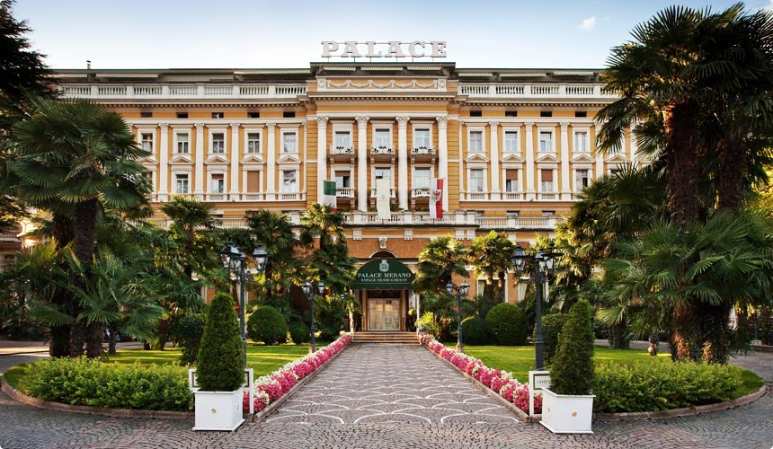 L’hôtel palace Merano se situe à Merano dans la province du Trentin-Haut-Adige en Italie. Il a été construit à l’emplacement de l’ancien château Maur qui datait de 1676. Au début du XXème siècle, le domaine est racheté par l’entrepreneur Peter Delugan. A cette époque, il comporte un très grand parc avec un vignoble, un potager, un parc botanique et une pépinière. L’aristocratie européenne aime séjourner dans la région. C’est ainsi qu’est prise la décision de construire un hôtel. Le Palace Hôtel est érigé en 18 mois et ouvre ses portes en 1906 dans un style néoclassique qui n’est pas rappelé les élégants hôtels de la Côte d’Azur.