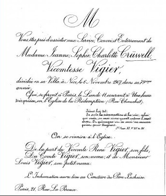 La vicomtesse Vigier a eu la chance d’être bénie des dieux jusque dans la mort où elle a été emportée sans connaître de longues souffrances et la dépendance. Quant à l’arrangement trouvé avec son époux pour concilier mariage et chant, il prouve que lorsque deux personnes amoureuses ont l’intelligence de s’écouter et de faire des compromis tout est possible.