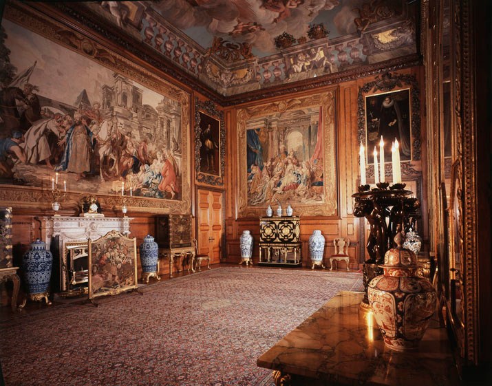 La chambre d’audience du château de Windsor a été créée pour Catherine de Bragance, épouse du roi Charles II. Elle contenait cette armoire qui fut ensuite déplacée dans la chambre du roi George IV à Carlton House.