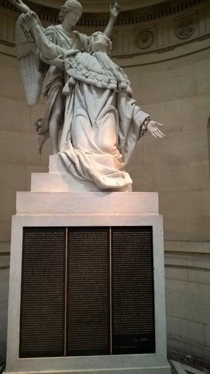 Comme on le voit c’est la Religion reconnaissable à la croix qui soutient la reine dans cette œuvre de Cortot tandis que la statue du roi est de Bosio.