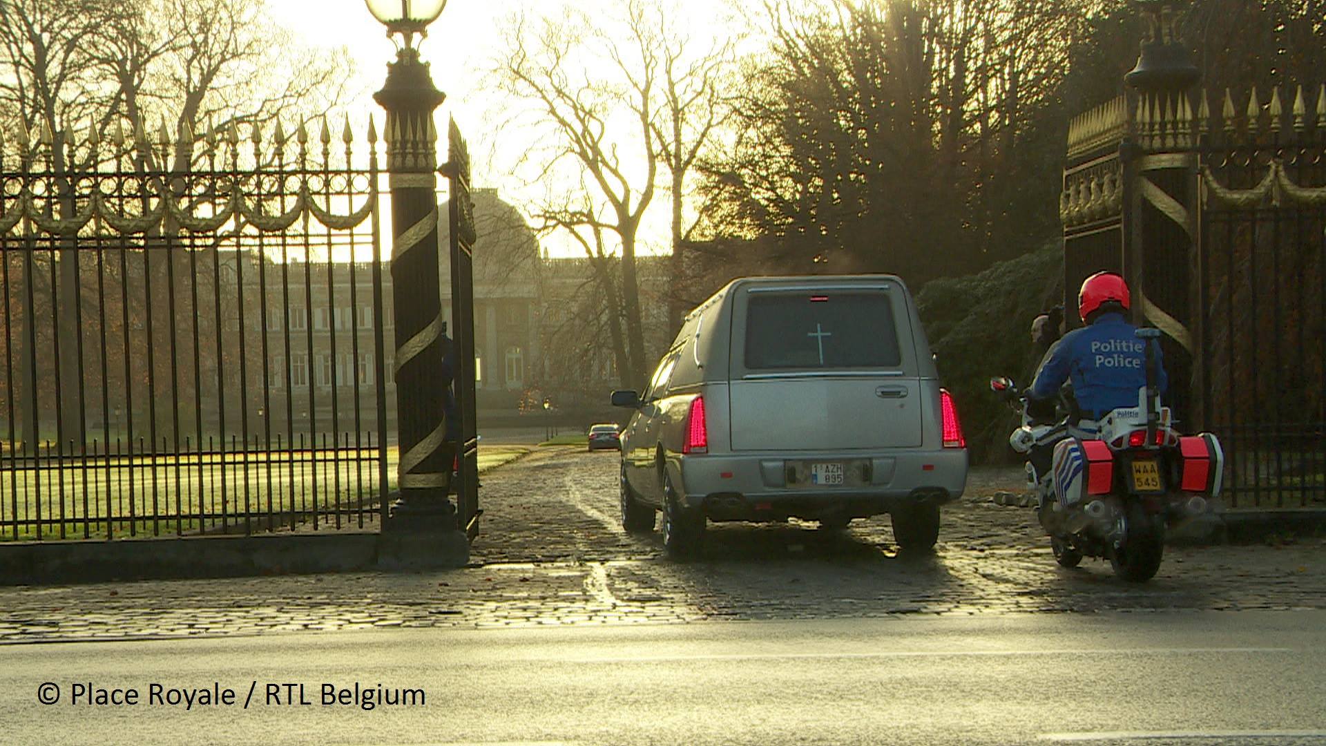 La dépouille de la reine Fabiola a quitté ce matin le château du Stuyvenberg pour la chapelle du château de Laeken. Le corbillard escorté par la police motorisée, était suivi par les véhicules du roi et de la reine des Belges, du roi Albert et de la reine Paola, de la princesse Astrid et du prince Lorenz, du prince Laurent et de la princesse Claire de Belgique. Mardi après-midi, la dépouille de la reine sera alors acheminée vers le Palais royal de Bruxelles. (Copyright phoito : Page Facebook Place Royale RTL TVI)