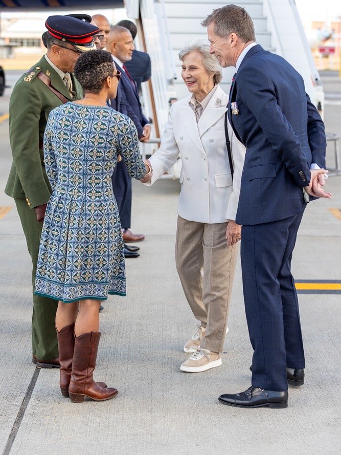 A l’aéroport, la duchesse a été accueillie par le gouverneur, le Premier Ministre et d’autres responsables politiques et militaires. (Copyright photos :  page Facebook du gouverneur des Bermudes – Merci à Petit Belge)