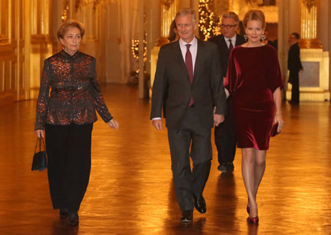 La reine Paola, la reine Fabiola, le prince Philippe, la princesse Mathilde, le prince Laurent et la princesse Claire ont assisté en fin d’après-midi au concert de Noël au Palais royal de Bruxelles. Une réception était organisée après le concert qui était assuré par l’Orchestre National de Belgique, par le baryton José Van Dam et par les solistes de la Chapelle Musicale Reine Elisabeth sous la direction de Monsieur Christopher Warren Green. (Copyright photos : Getty images – Merci à Anne P. – Source : site de la monarchie belge)