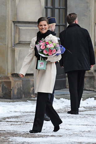 A l’occasion de la Sainte Victoria, la princesse héritière de Suède a été très fleurie devant le Palais royal de Stockholm. Une tradition en présence de la reine Silvia mais aussi de son fiancé Daniel Westling (Copyright photos : Getty images, Expressen, Aftonbladet)