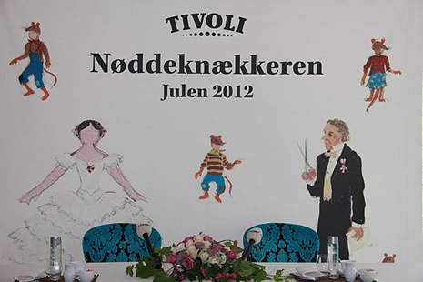 De retour des Etats-Unis, la reine Margrethe de Danemark a assisté à la conférence de presse à l’hôtel NIMB de Tivoli, le célèbre parc d’attractions de Copenhague pour présenter le spectacle « Noddknaekkeren » dont la souveraine est scénographe et qui sera joué à Tivoli durant la saison de Noël 2012. (Merci à Agnès pour ses photos)