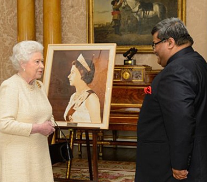 A Buckingham Palace, la reine Elizabeth II a reçu en audience le Haut Commissaire pour le Bangladesh à Londres, Son Excellence Mohamed Mijarul Quayes qui a remis à la souveraine un portrait. (Copyright photo : PA)