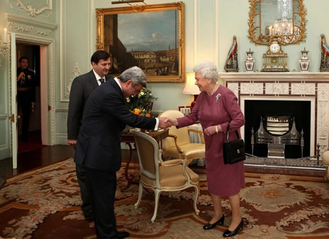 La reine Elizabeth II a reçu en audience à Buckingham Palace le président arménien, Serge Sargsyan qui effectue sa première visite en Grande-Bretagne depuis son élection en 2008. (Copyright photos : Getty images)