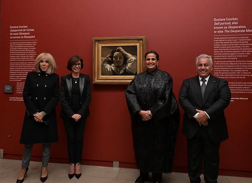 Au Musée d’Orsay, la sheikha Al Mayassa a assisté aux côtés de Brigitte Macron et de la Ministre Rachida Dati à la présentation du tableau « Le Désespéré » du peintre français Gustave Courbet réalisé entre 1843 et 1845.