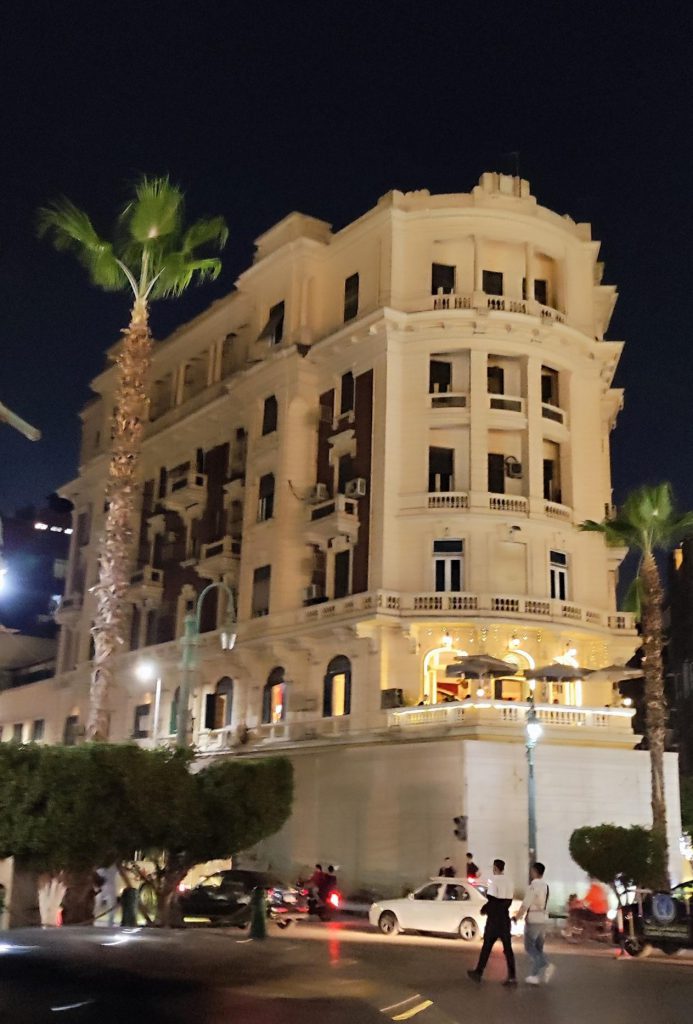 Place Talaat Harb, au Caire. Au rez-de-chaussée, la fameuse pâtisserie Groppi, en cours de réfection.